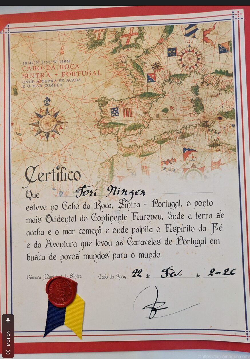 欧州最西端到達証、宛名に注目